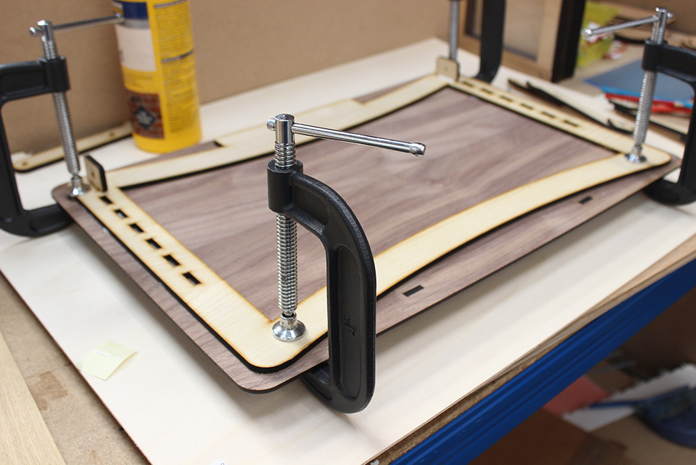 Assemble metal bed frame c clamps.